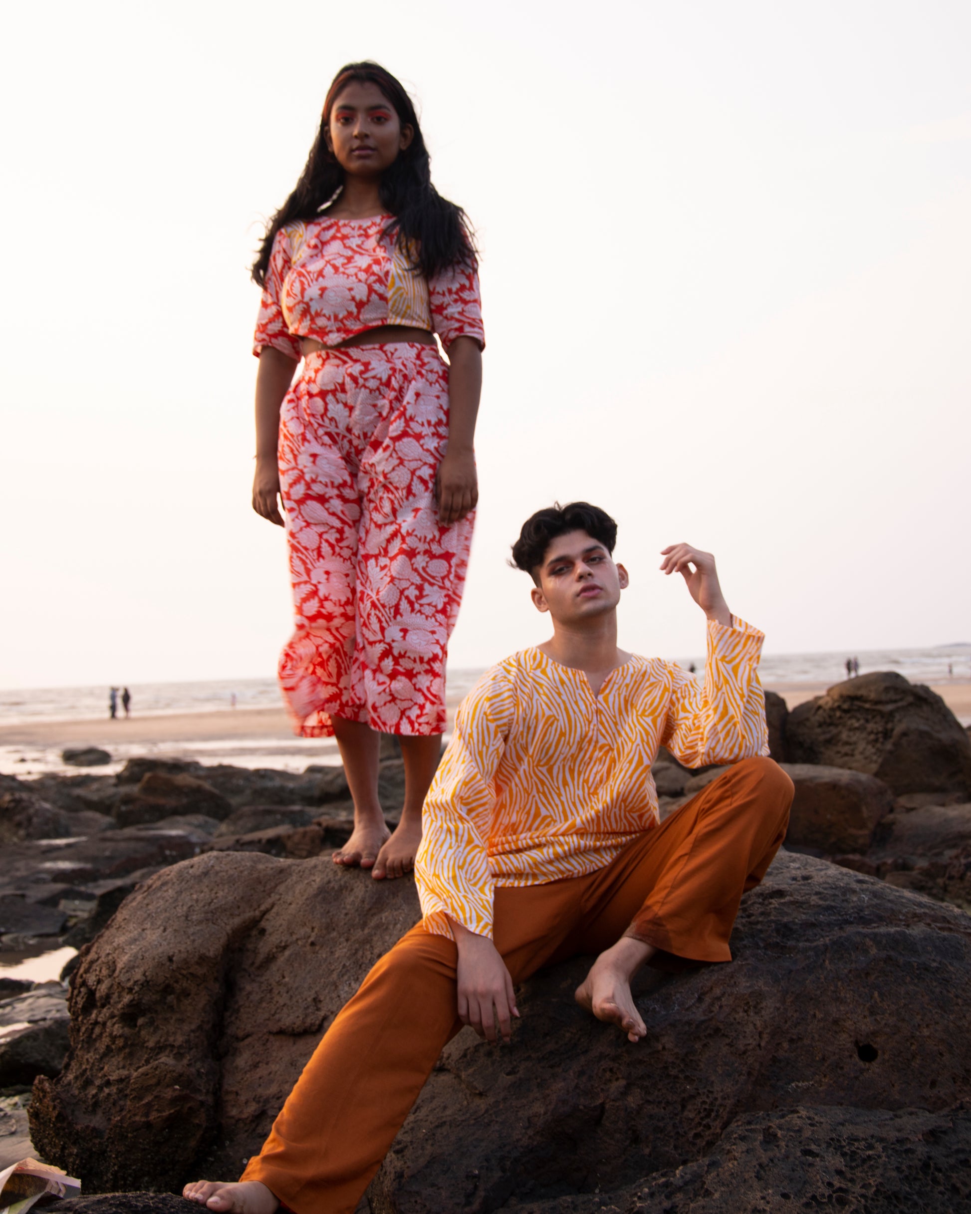 The fabric for this collection is not naturally dyed. However, all the fabrics are made by artisans with whom we have worked for weaving and printing processes to bring this collection to you. That being said, sustainability will always be at the core of our process at KiRu, and we hope to improve our production process further with the success of this campaign. We value our interaction with our customers immensely and hope to achieve full transparency in our production process through this disclaimer. Ethics are considered foremost in our functioning as a brand and we aim to practice these to our fullest capacity through the course of our collections.