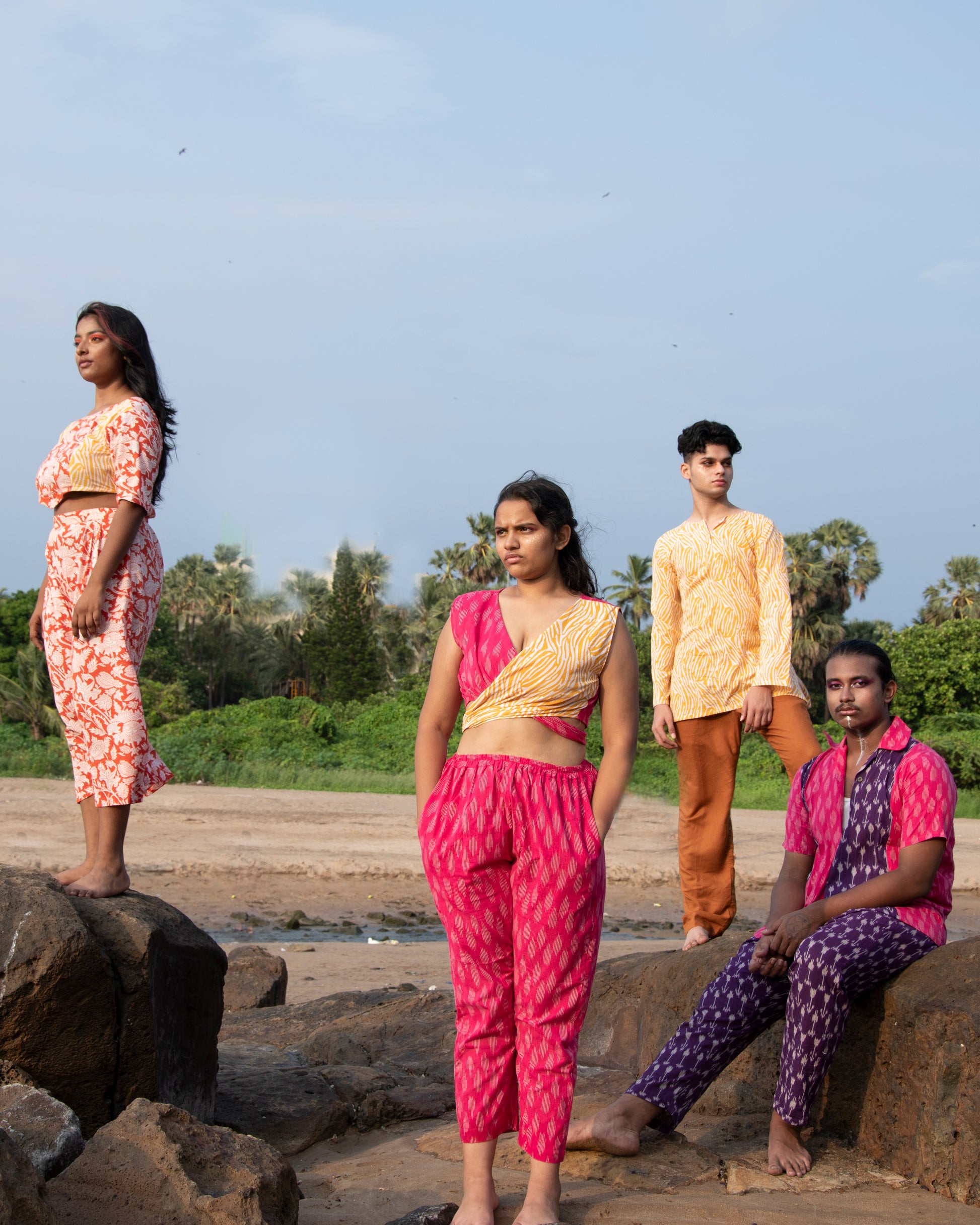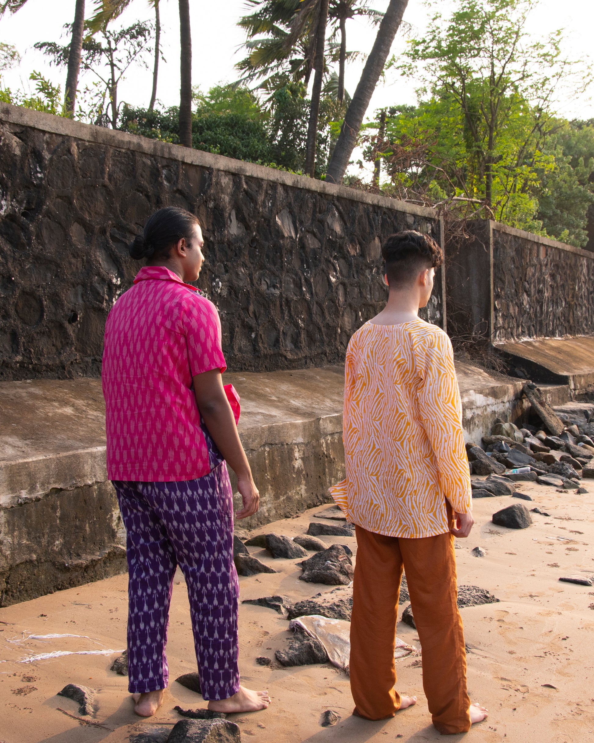 The fabric for this collection is not naturally dyed. However, all the fabrics are made by artisans with whom we have worked for weaving and printing processes to bring this collection to you. That being said, sustainability will always be at the core of our process at KiRu, and we hope to improve our production process further with the success of this campaign. We value our interaction with our customers immensely and hope to achieve full transparency in our production process through this disclaimer. Ethics are considered foremost in our functioning as a brand and we aim to practice these to our fullest capacity through the course of our collections.
