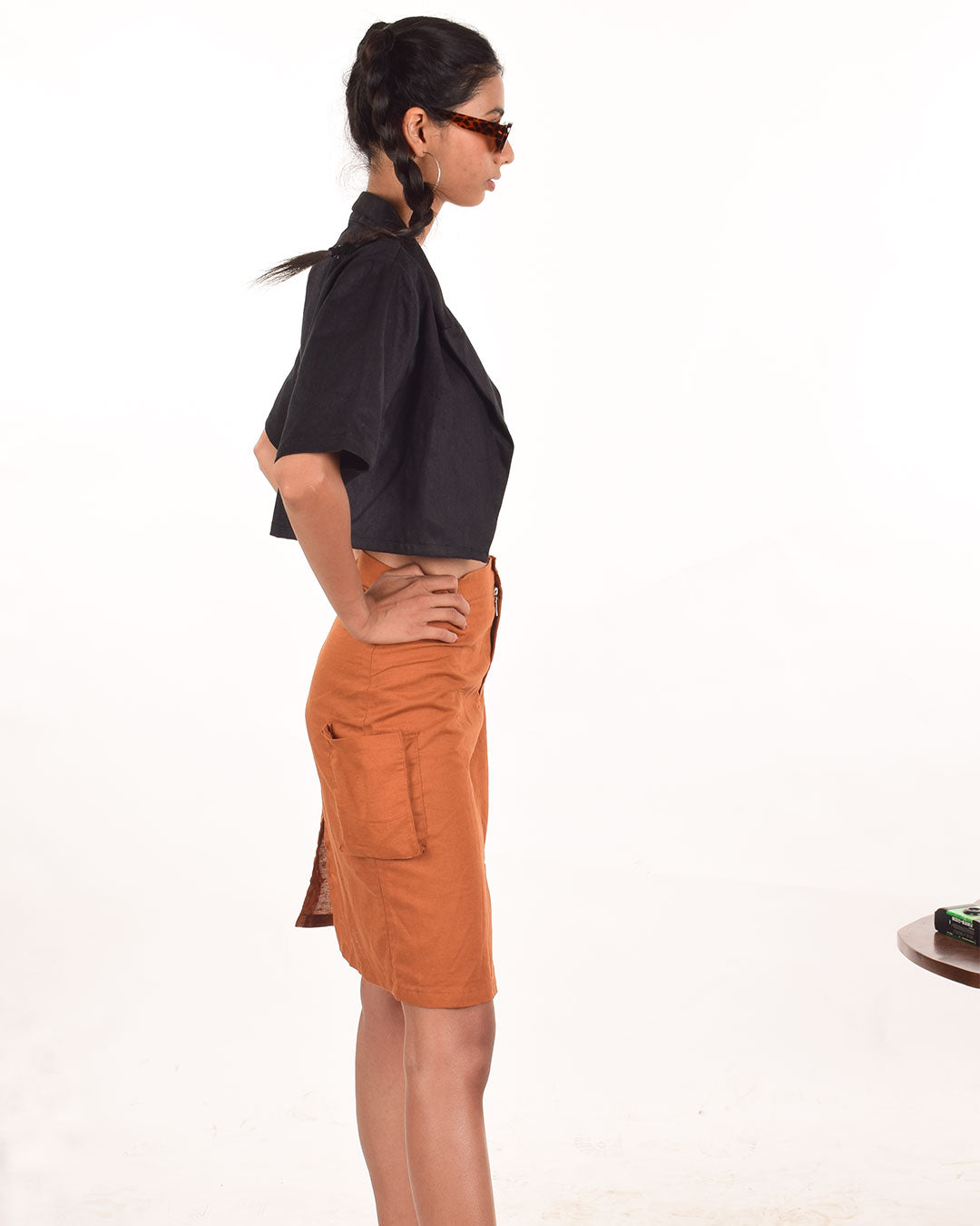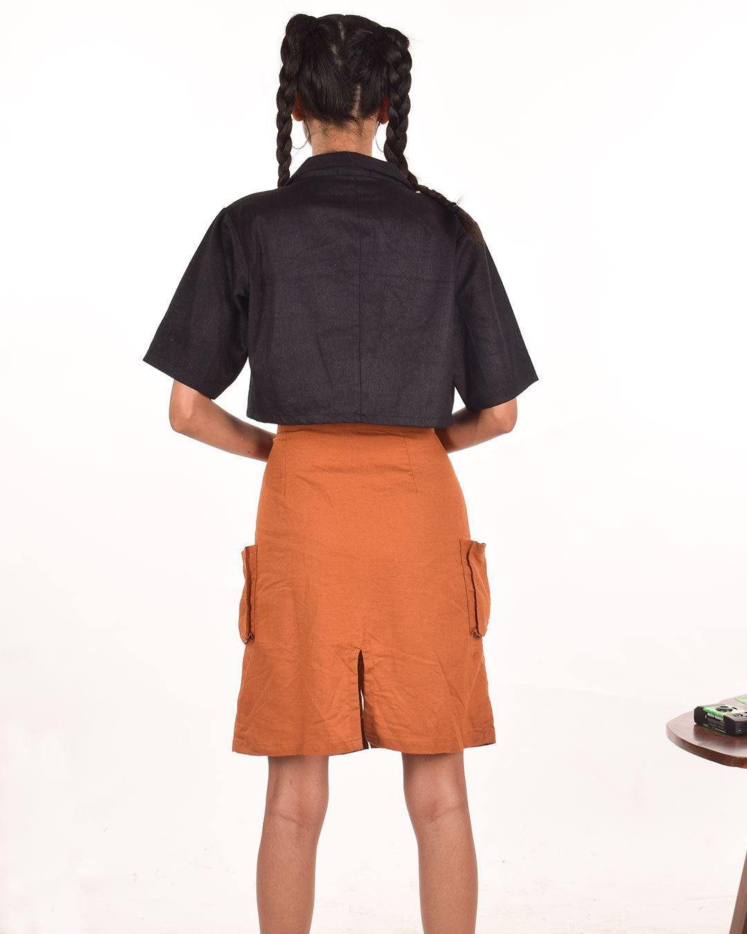 Our Cold coffee cargo skirt was made with our childhood in mind. The perfect Y2K comeback in the summers of 2022. Featuring a button fastening and drawstring for fitting, belt loops, and cargo pocket detailing. Made from export surplus fabric contributing to the circular economy.