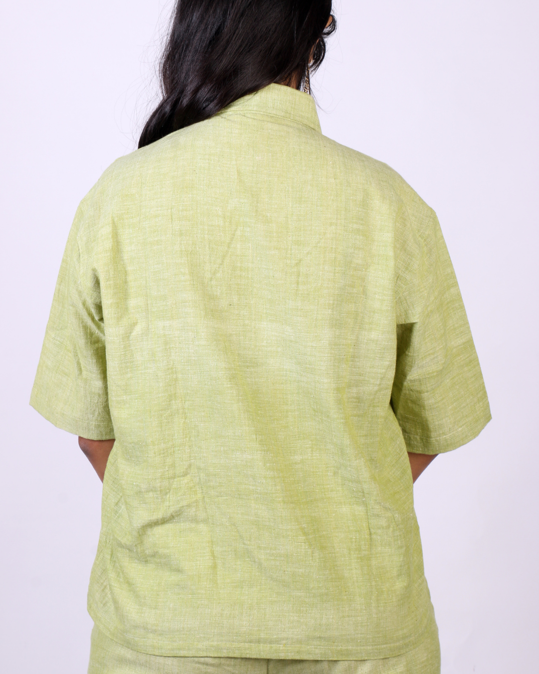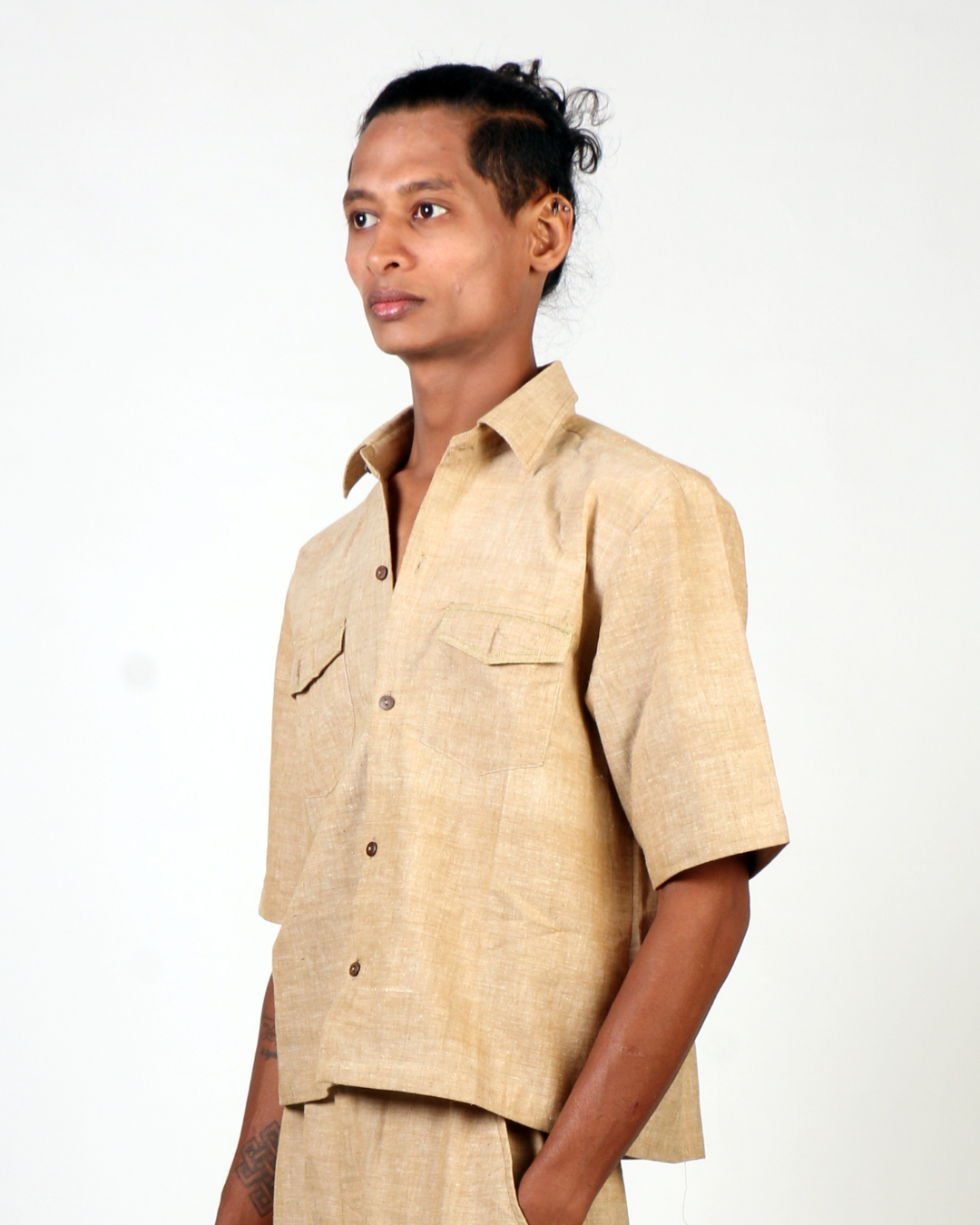 The JC shirt can be paired over a turtle neck and a coat for winter, unbuttoned in the summer or simply worn as the showstopper of an ensemble. Made from chambray hand-spun khaadi cloth it’s sure to make you feel at home, even when you’re back to work. Fabric: Yard dyed khaadi cloth. Business casuals at their finest and most comfortable.