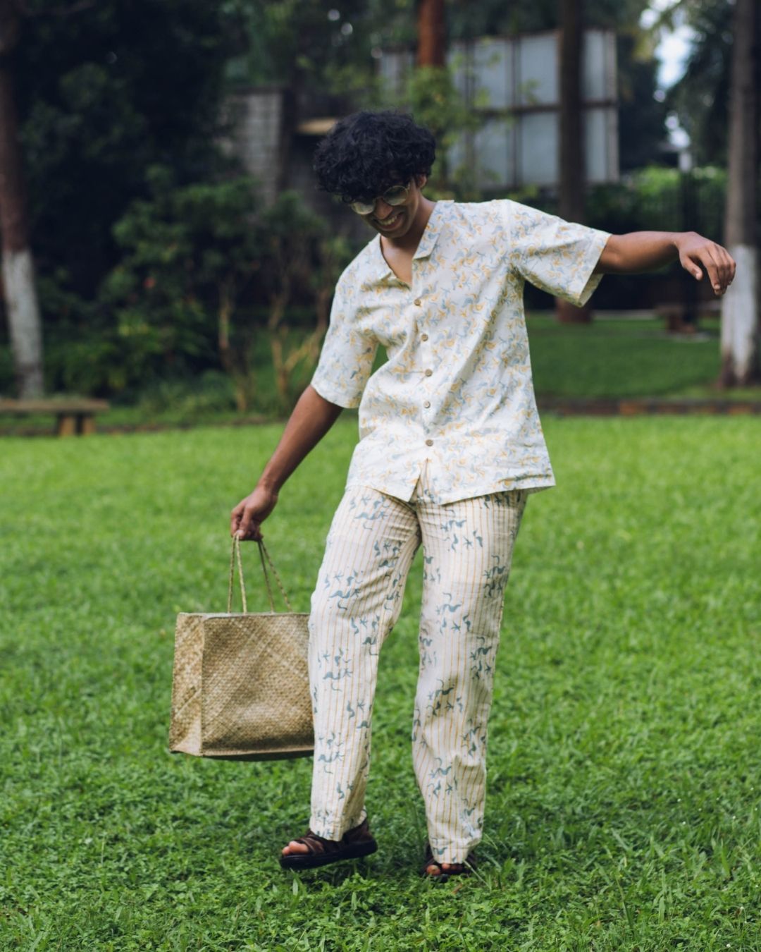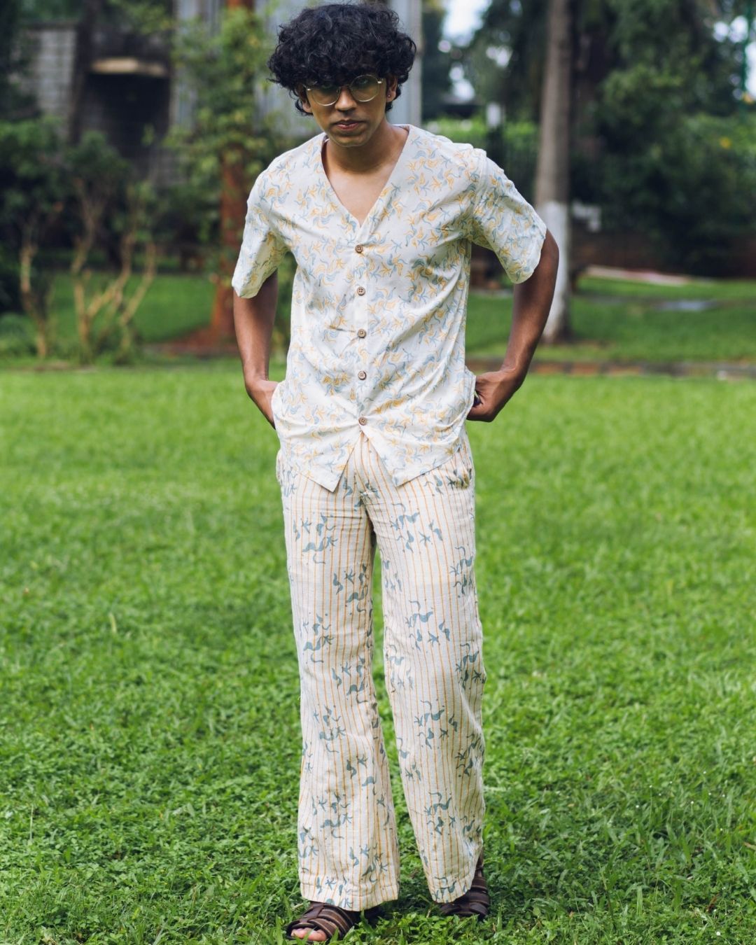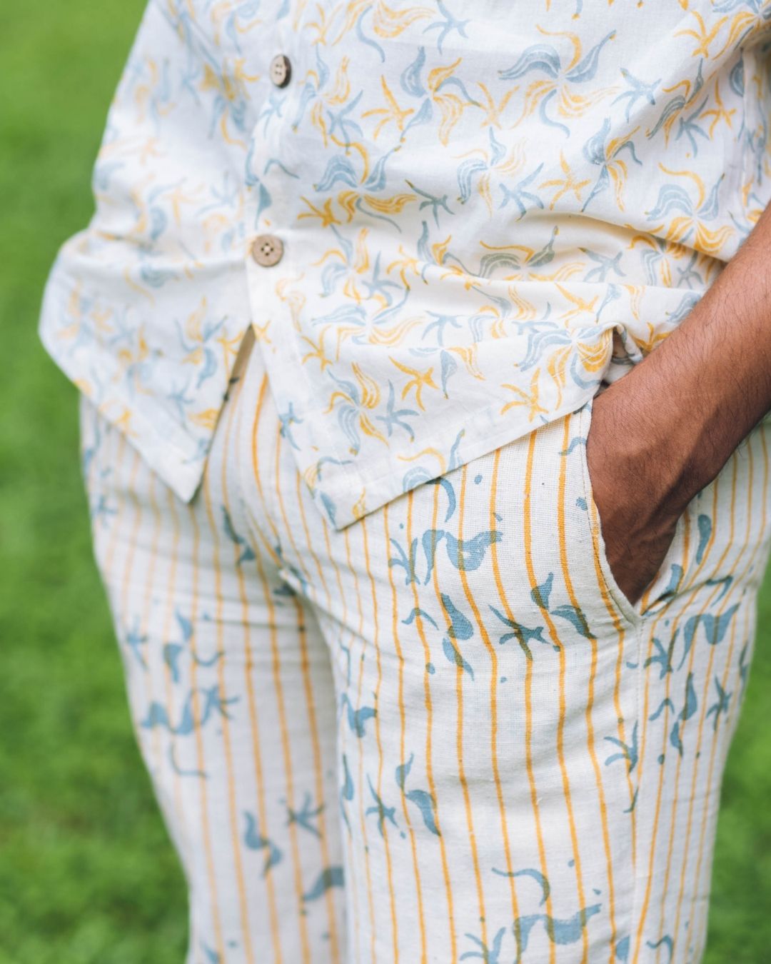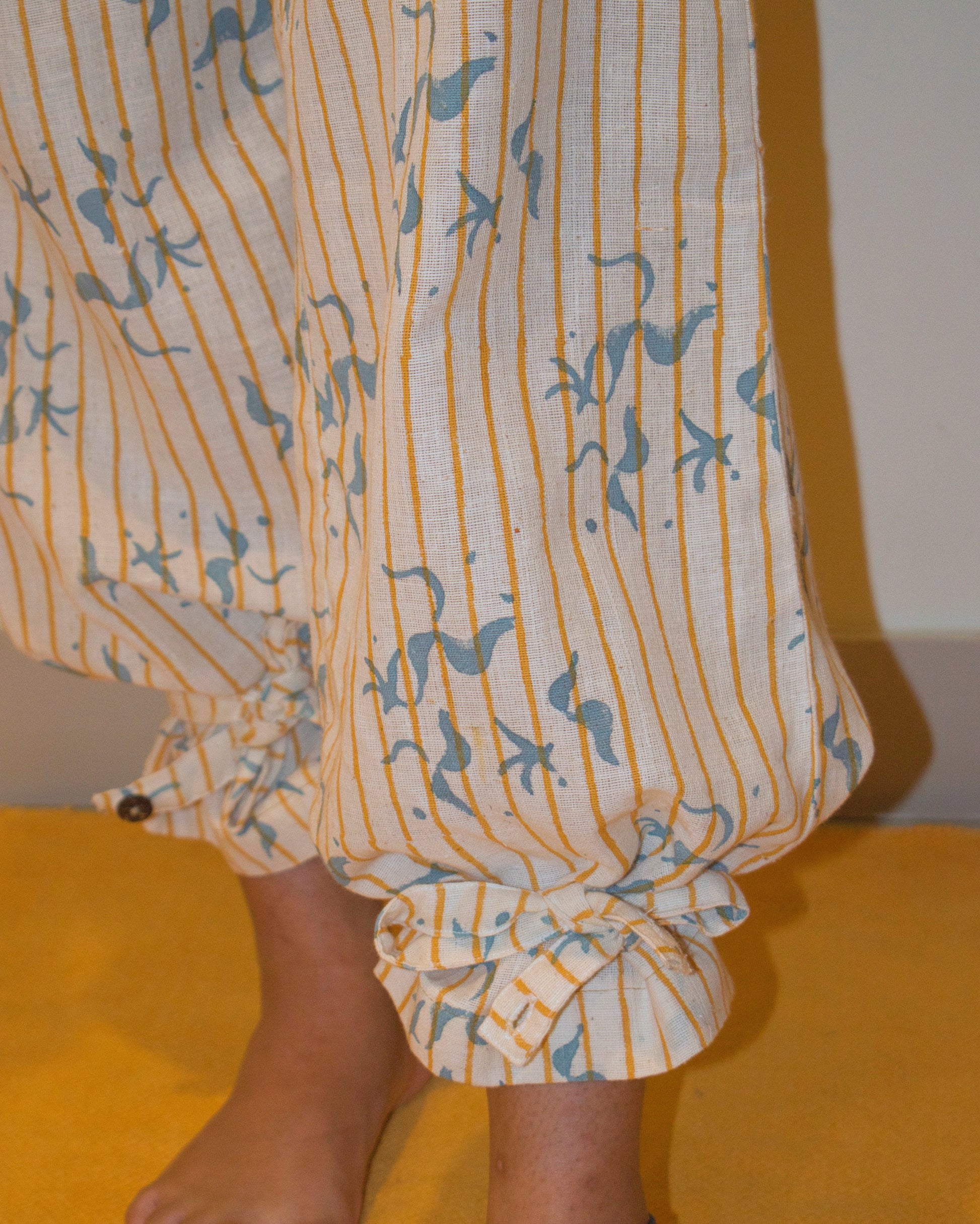 These pair of block-printed bell-bottoms are the perfect piece to own this season and with side elastic bands these trousers give you comfort to fill up the belly and look stylish. Dress it up or dress it down, whatever tickles your fancy. Handcrafted with block-printed handwoven Kala cotton, these pair of trousers have two side pockets and are elasticated at the sides. The perfect festive day to night piece to own. Fear not you can wear these with something fancy for a party or something casual for your next vacation (we're sure that's not far off ;))