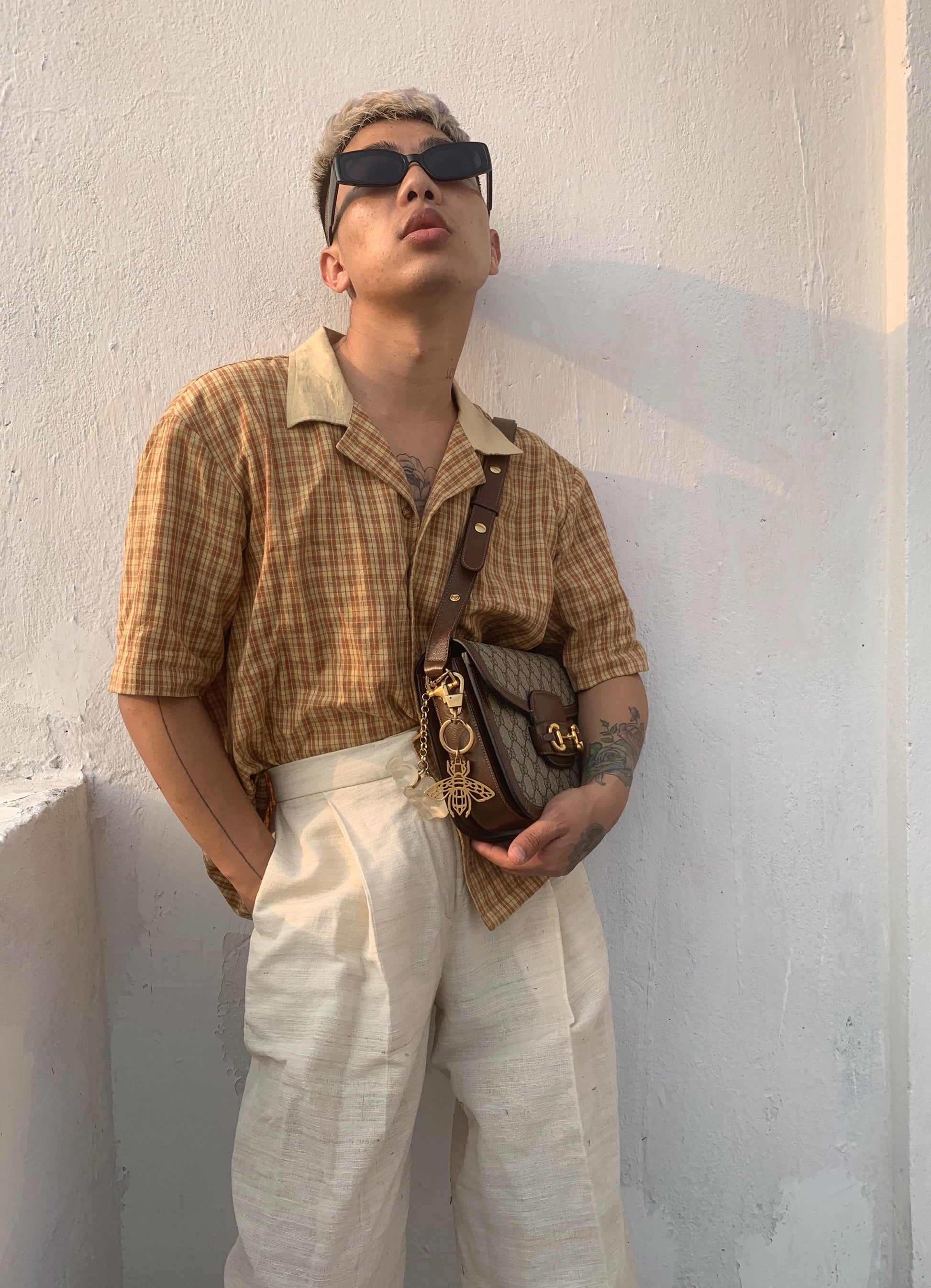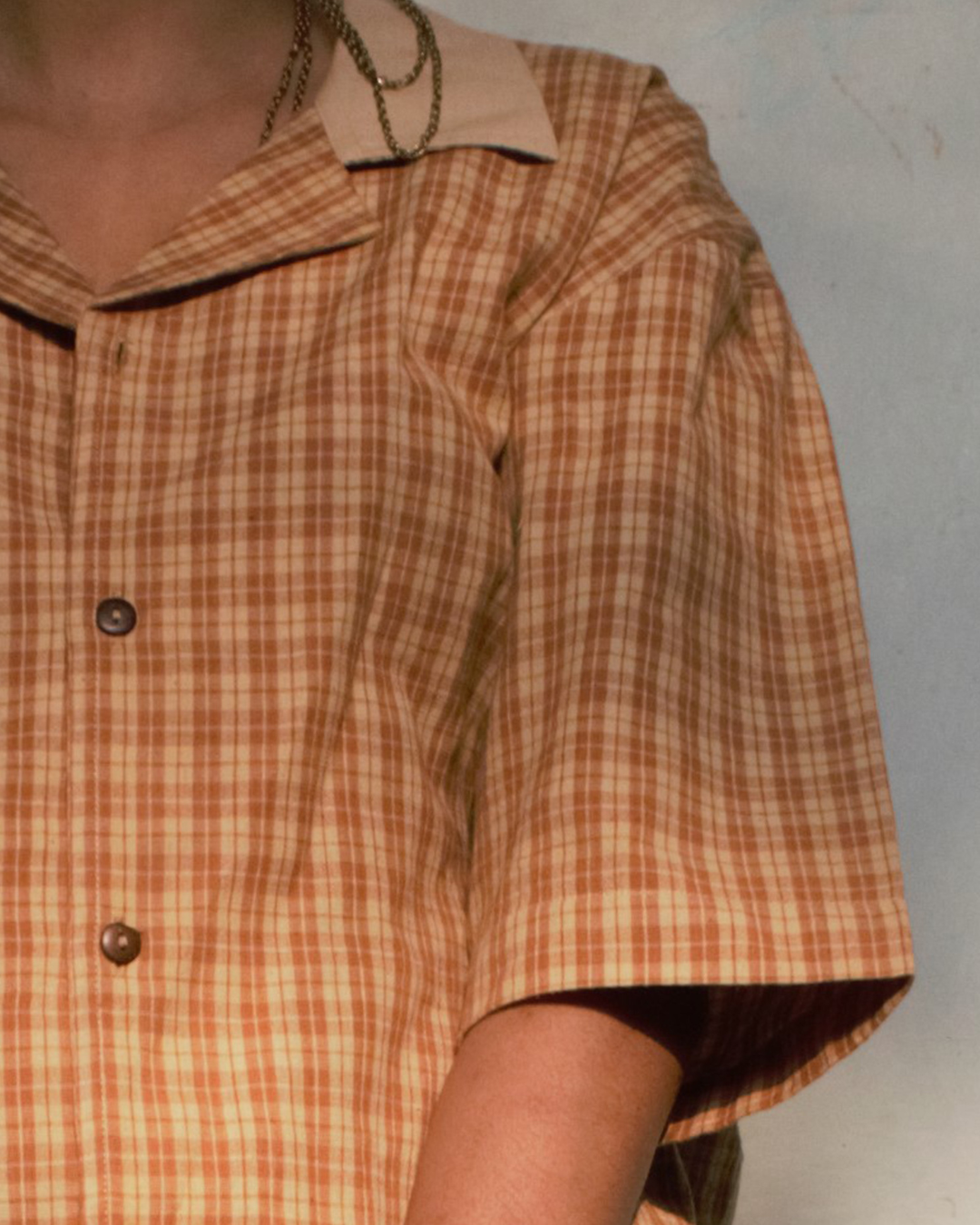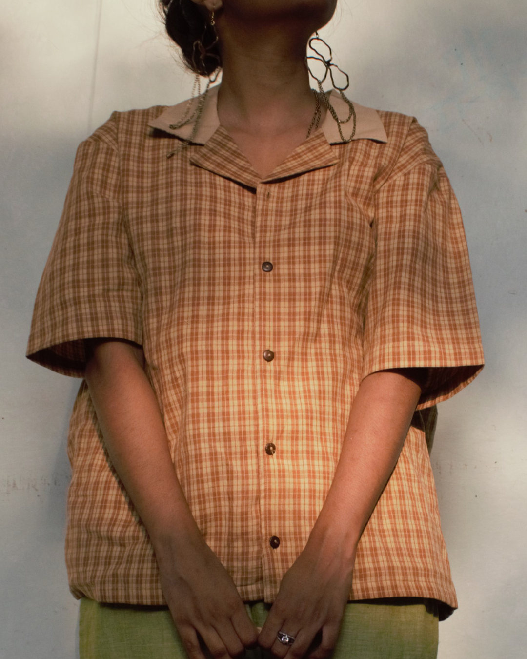 Feel like a student in our handwoven checks shirt. A simple yellow Cuban collar along with a 'clueless' checked body. Anti-fit and perfect for your business casual occasions.