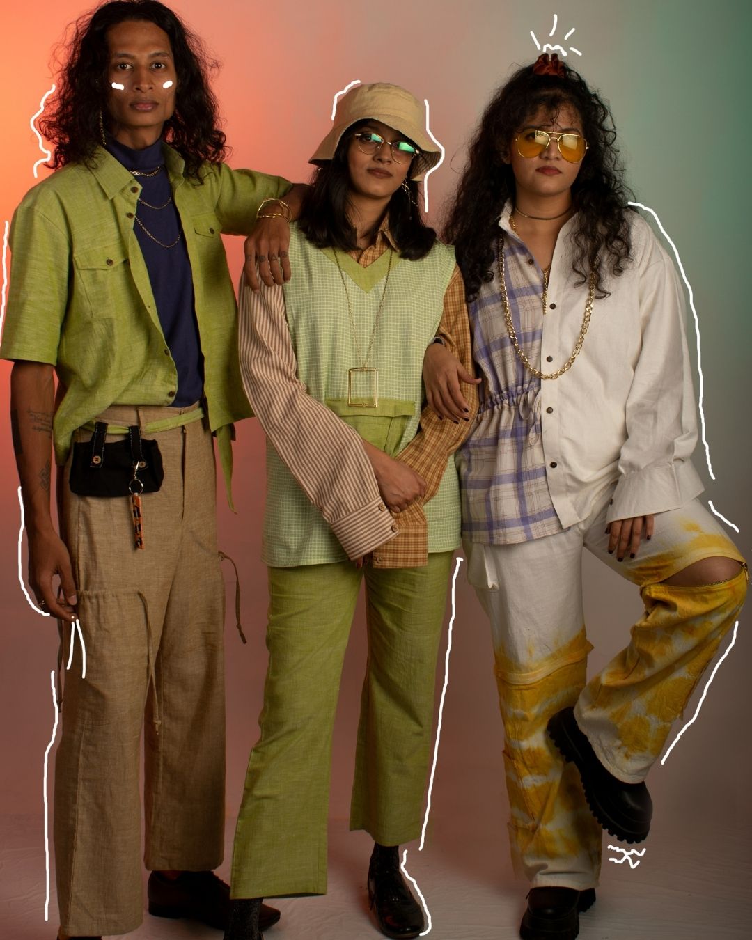 Street meets sustainability, Papita pocket trousers are a perfect pair to lounge around in your crib, run errands, or for your trek adventure. Made from handspun khaadi cloth, these lightweight trousers have an elasticated back with two drawstring pockets on the sides to change the silhouette and keep your mini-essentials safe.