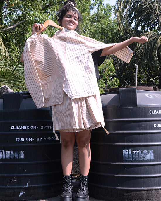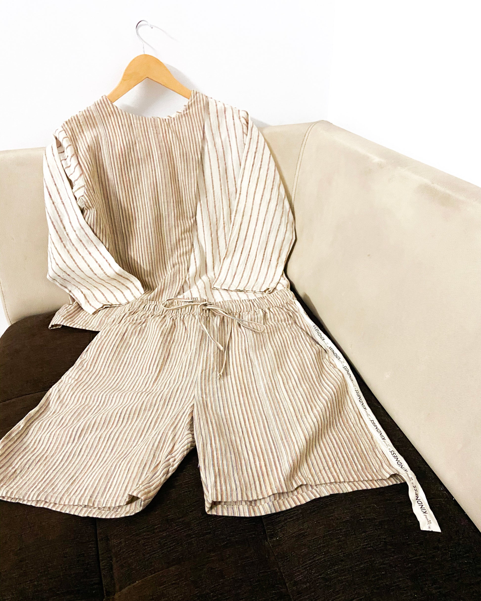 The Quintessential WFH set oozes comfort and style at its finest! Colour/pattern: multicolored colored stripes, off white base with brown stripes.