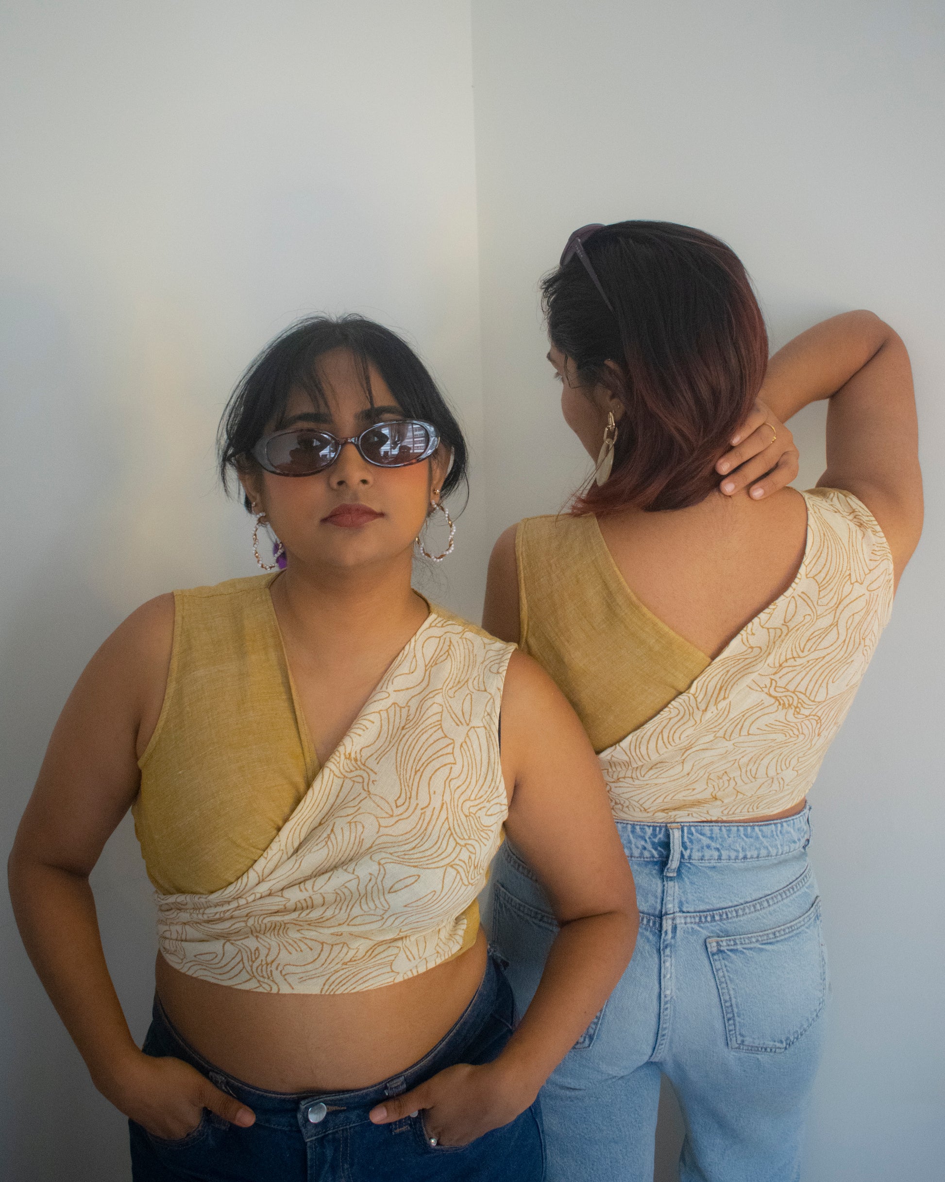 Perfect for those who love a desi aesthetic and handcrafted details but still want a modern silhouette, this wrap top pairs beautifully with jeans, skirts, or layered looks for everyday outings or special plans.