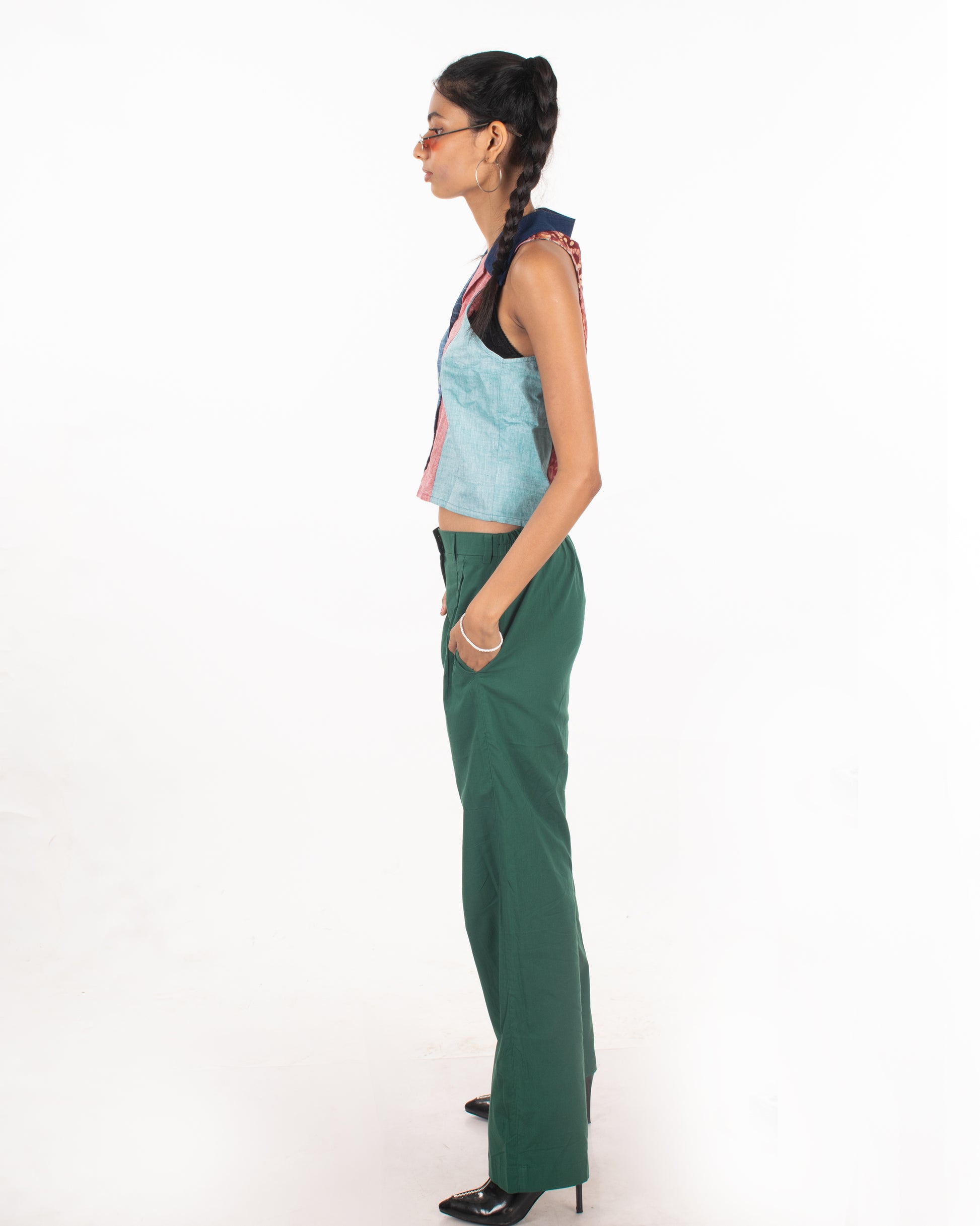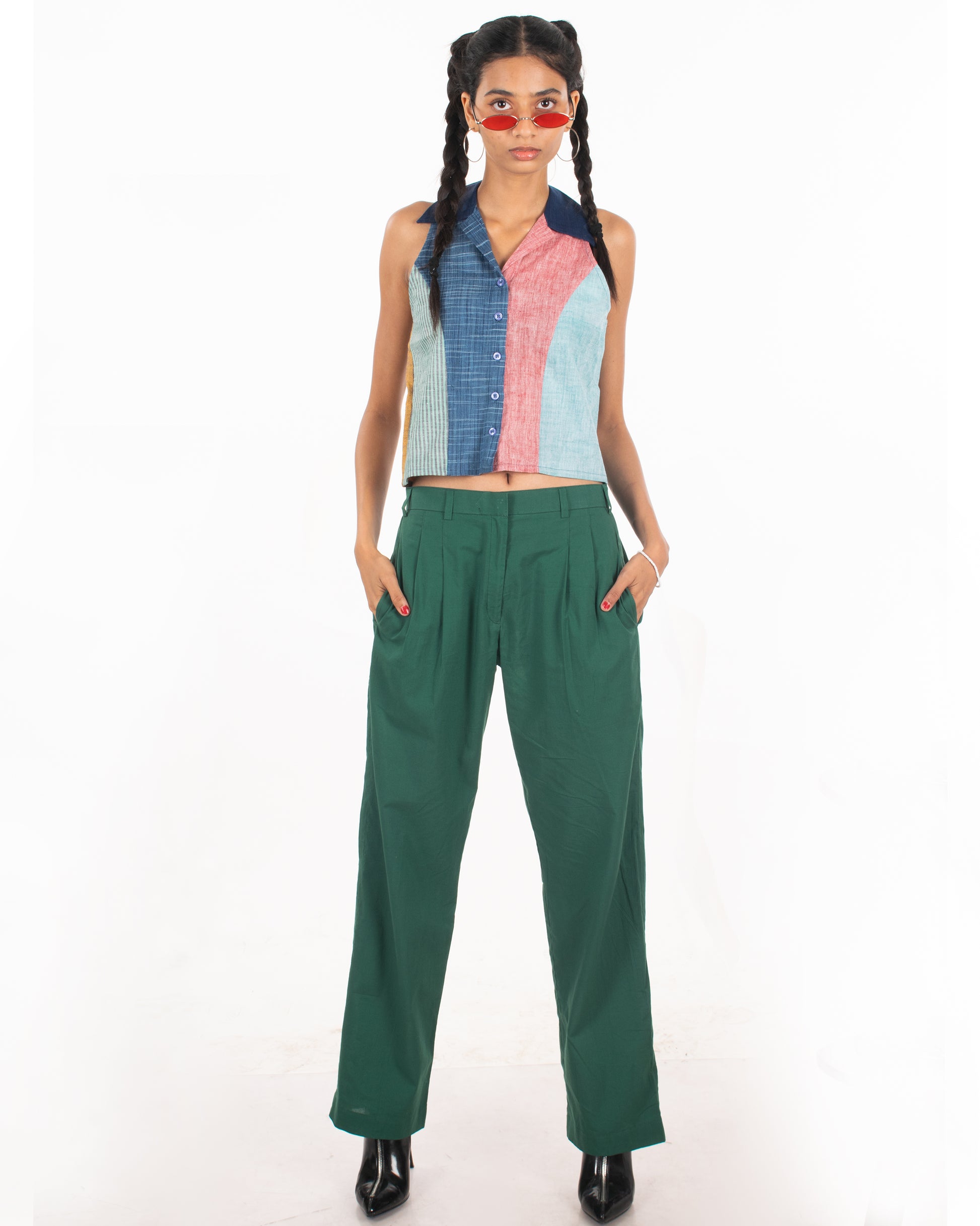 High-waisted, front pleated straight-legged trousers that feature an elasticated waist making them ideal workwear. In the earthy shades of brown and dark green, that work with classic white shirts, graphic tees, or a simple short-printed kurta. Large pockets on the side for your phone, keys, and AirPods. Available in brown and green.